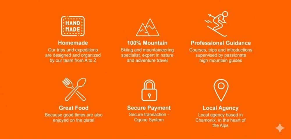 As passionate mountaineers and skiers ourselves, we are driven by the desire to share our love for the mountains with travelers from all horizons. We spend a significant amount of time in the field to continuously refine our technical skills and our deep understanding of the alpine environment.